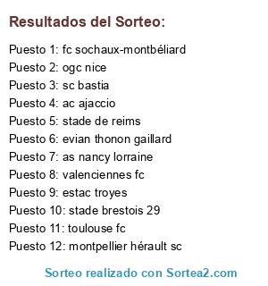 - Puesto 1: fc sochaux-montbéliard