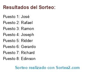 Lista de participantes: Rafael , José , Joseph , Ridder , Richard , Ramon , Gerardo , Edinson.