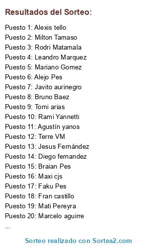 El Sorteo se realizara a las 21hs ARG. Actualiza la pagina a esa hora para ver los resultados