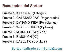 Lista de participantes: KAA GENT (ErMigui), B.MUNICH (Kil), BASEL FC (Eskakeis), DYNAMO KIEV (Porcelamus), M.UNITED (Miguerlp), WOLFSBURGO (DjBross), GALATASARAY (Degenerado).