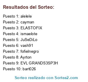 Lista de participantes: vash91, Ayrton, JuSeDiLo, ELASTOFIX, ismaelote, cayman, EVL GRANDS3SP3H, bart026, alelele, fofielnegro.