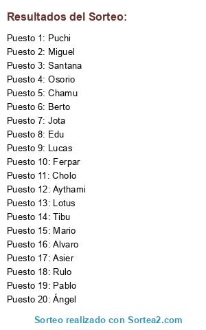 Lista de participantes: Tibu, Aythami, Asier, Chamu, Edu, Lotus, Berto, Ángel, Santana, Osorio, Jota, Cholo, Lucas, Rulo, Puchi, Alvaro, Pablo, Ferpar, Miguel, Mario.