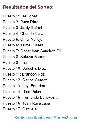 Lista de participantes: Eros, Paco Diaz, Carlos Gamez, Salazar Marco, Fer Lopez, Jaime Juarez, Chendo Duran, Luyi Edredon, Rico Pelon, Jardy Rafael, Brandon Rdz, Juan Ruvalcaba, Baluchis Diaz, Oscar Ivan Sanchez Gil, Omar Vallejo, Fernando Echeverria, Cazuela.