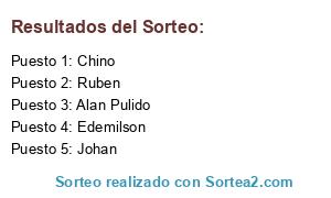 Lista de participantes: Alan Pulido, Edemilson, Ruben, Johan, Chino.