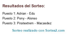 Lista de participantes: Pony - Alonso, Piratextrem - Macasdez, Adrian - Edu.