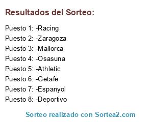 Lista de participantes: -Zaragoza, -Racing, -Getafe, -Espanyol, -Mallorca, -Deportivo, -Osasuna, -Athletic.