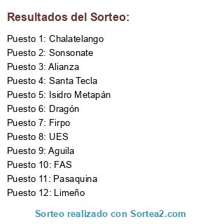 Lista de participantes: FAS, Limeño, Santa Tecla, Aguila, Alianza, Chalatelango, Sonsonate, UES, Dragón, Pasaquina, Firpo, Isidro Metapán.