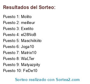Lista de participantes: Molito, Maschiikiito, Matyazpity, FeDe10, meilleur, el28NoB, Joga10, Exetito, WaLTer, Matrix10.