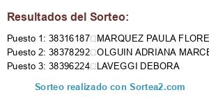 - Puesto 1: 38316187 MARQUEZ PAULA FLORENCIA