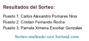 Lista de participantes: Juan Horacio Miranda Moya, Pamela Ximena Escobar Gonzales, Miguel Ángel Torrez Ticona, Hugo Cesar Mena, William Freddy Pabon Yujra, Jorge Huascar Orihuela Chirinos, Raul Randolf Luna Tola, Carlos Alexandro Pomares Nina, Cristian Fernando Rocha, Wilmer Walter Cruz Quito, Paola Andrea Cauna Coarite, Edison Aniel Llave Calcina, Jorge Neil Taborga Martinez, Israel Zenteno Avendaño, Carlos Tito Caceres, Jhonn Atann Miranda Flores, Wilfor Rodrigo Zegarra Espejo, Gonzalo mollinedo Ramos, Dante Josue Vasquez Mendoza, Yamil Deymar Llanqui Castro, Jhonny Fernando Quispe Quispe, Vladimir Troncoso Quintanilla, Rebeca Sara Cama Paco Cruz, Luis Fernando Alberto Pocori, Edson Alessandro Alberti Echeverria, Pablo Saul Vera Romero, Victor Andres Mamani Quelca, Susan Valda Saavedra, Milena Rada Escobar, Carolina Ochoa Mamani, Jorel Ronald Vargas Esprella, Alvaro Rey Choque Fernandez, Kevin Rodrigo, Bruno de la peña.