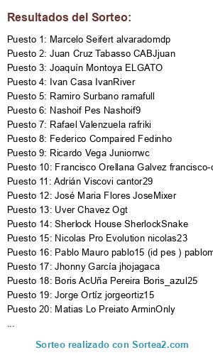 - Puesto 15: Nicolas Pro Evolution nicolas23