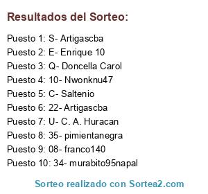Lista de participantes: 01- darkeztblue468, 02- sgto.cabral, 03- mistiko_1972, 04- Saltenio, 05- JSDRAKE, 06- Enrique 10, 07- maurogfch, 08- franco140, 09- GranComander, 10- Nwonknu47, 11- Papa Noel, 12- manchu325, 13- Tuttee, 14- marcosmz, 15- XxXFENIXxX, 16- gonza40, 17- Hierro14, 18- mariano23, 19- Franco Reloaded, 20- Doncella Carol, 21- Thomas Kurz, 22- Artigascba, 23- ChaniryXXI, 24- el nomade, 25- C. A. Huracan, 26- HaVoK023, 27- Tairefer, 28- 9U77YY, 29- Celasco, 30- Reanti K, 31- Maxale2, 32- vladimirpelle, 33- EzeBiagioli.Nueva, 34- murabito95napal, 35- pimientanegra, 36- yioguille, A- sgto.cabral, B- mistiko_1972, C- Saltenio, D- JSDRAKE, E- Enrique 10, F- maurogfch, G- franco140, H- GranComander, I- Nwonknu47, J- Papa Noel, K- Tuttee, L- marcosmz, M- XxXFENIXxX, N- gonza40, Ñ- Hierro14, O- mariano23, P- Franco Reloaded, Q- Doncella Carol, R- Thomas Kurz, S- Artigascba, T- ChaniryXXI, V- el nomade, U- C. A. Huracan, W- HaVoK023, X- Tairefer, Y- 9U77YY, Z- Celasco, AA- Reanti K, BB- Maxale2, CC- pimientanegra, DD- yioguille.