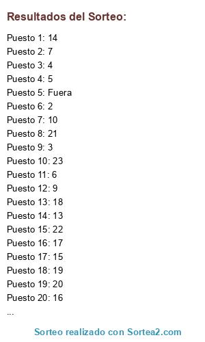 Resultados del sorteo: