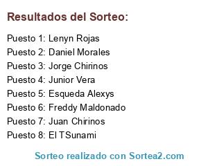Lista de participantes: Freddy Maldonado, Daniel Morales, Junior Vera, Juan Chirinos, Jorge Chirinos, Lenyn Rojas, Esqueda Alexys, El TSunami, .