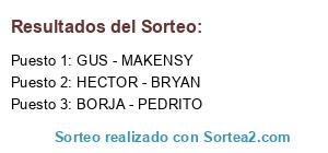 Lista de participantes: GUS - MAKENSY, BORJA - PEDRITO, HECTOR - BRYAN.