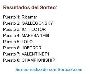 Lista de participantes: TRAIDORACO, JAGOL, RICAMAR, PISTONES, LOLO.
