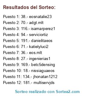 Lista de participantes: 1.- yusmarycabr1, 2.- serviciortiz, 3.- victoriaveos, 4.- vivianavivas, 5.- hidraulicosz, 6.- johannavmc14, 7.- alejandro122, 8.- yoditaricxc3, 9.- pamegarrio12, 10.- eosi.mlt, 11.- nicolevateos, 12.- dtoito.mlt, 13.- josbert.mlt, 14.- saravargas55, 15.- elgozoncomid, 16.- mmeos.mlt, 17.- goldsportven, 18.- nissiaguaeos, 19.- yeisonrj2244, 20.- nissiaguaeos, 21.- serviciortiz, 22.- juaninterpla, 23.- ismaelrps513, 24.- rafaelsuarez, 25.- domenicoroma, 26.- mmeos.mlt, 27.- ingenierias1, 28.- elgozoncomid, 29.- yusmarycabr1, 30.- victoriaveos, 31.- edwardtkd123, 32.- leonrecargas, 33.- eosi.mlt, 34.- vivianavivas, 35.- dtoito.mlt, 36.- eos.mlt, 37.- edwardtkd123, 38.- eosnatalie23, 39.- jorgefincae1, 40.- eos.mlt, 41.- mundodesechb, 42.- josbert.mlt, 43.- danielitaeos, 44.- papadiovzla1, 45.- flordelibano, 46.- amacupotaso1, 47.- vz.mlt, 48.- multiservjds, 49.- fincaeos3cbo, 50.- alejandro122, 51.- marketcasa11, 52.- vz.mlt, 53.- jesusgonza35, 54.- fernangarcia, 55.- megaeladio53, 56.- sharoneliza2, 57.- comerbadiali, 58.- dannyceateos, 59.- nicolevateos, 60.- flordelibano, 61.- nicolevateos, 62.- vivianavivas, 63.- agua.mlt, 64.- vz.mlt, 65.- luismedinaca, 66.- dtoito.mlt, 67.- dorisoriaeos, 68.- vz.mlt, 69.- betc5densing, 70.- adgt.mlt, 71.- katielyluci2, 72.- danielitaeos, 73.- javiercleon1, 74.- airplane2121, 75.- elgozoncomid, 76.- vz.mlt, 77.- agua.mlt, 78.- ciberaguila1, 79.- staripzo1234, 80.- yoditaricxc3, 81.- jhoanruben11, 82.- comerbadiali, 83.- mmeos.mlt, 84.- commaravilla, 85.- flordelibano, 86.- teresirateos, 87.- interplanet2, 88.- denipereira1, 89.- agua.mlt, 90.- yeisonrj2244, 91.- yeralrojas21, 92.- venezuela122, 93.- deibisguedez, 94.- serviciortiz, 95.- serviciortiz, 96.- comerbadiali, 97.- daysissut123, 98.- adgt.mlt, 99.- jorgefincae1, 100.- eosmarylrs25, 101.- mundodesechb, 102.-elgozoncomid, 103.-eos.mlt, 104.-dannyceateos, 105.- eosmarylrs25, 106.- luismedinaca, 107.- danielitaeos, 108.- ysamariela23, 109.- vz.mlt, 110.- dannyceateos, 111.- elenitaeos13, 112.- edwinrojas12, 113.- megaela.mlt, 114.-danielitaeos, 115.- dannyceateos, 116.- isamarperez1, 117.- dannyceateos, 118.- johannavmc14, 119.- luismedinaca, 120.- nissiaguaeos, 121.- mmeos.mlt, 122.- interplanet2, 123.- ismaelrps513, 124.- juaninterpla, 125.- eosmarylrs25, 126.-danielitaeos, 127.- yesicapagos1, 128.- mlucias12543, 129.- vz.mlt, 130.- dannyceateos, 131.- joserojas123, 132.- fincaeos3cbo, 133.- jhonatan1212, 134.- jhonatan1212, 135.- vz.mlt, 136.- eos.mlt, 137.-vivianavivas, 138.-danielitaeos, 139.- edvasnie2313, 140.- eos.mlt, 141.- jannismalave, 142.- venezuela122, 143.- eos.mlt, 144.- dannyceateos, 145.-danielitaeos, 146.- soysebas1111, 147.- javiercleon1, 148.- yeralrojas21, 149.- vz.mlt, 150.- isaacvaateos, 151.- angelsfash12, 152.- eosmarylrs25, 153.- jocipriani11, 154.- danielitaeos, 155.- eosmarylrs25, 156.- venezuela122, 157.- jhoanruben11, 158.- serviciortiz, 159.- mundodesechb, 160.- vz.mlt, 161.- mundodesechb, 162.- venezuela122, 163.- eos.mlt, 164.- isaacvaateos, 165.- danielitaeos, 166.- eosmarylrs25, 167.- vz.mlt, 168.- victoriaveos, 169.- betc5densing, 170.- eos.mlt, 171.- mundodesechb, 172.- domenicoroma, 173.- megaeladio53, 174.- serviciortiz, 175.- vivianavivas, 176.- leobardojrl2, 177.- jgabrielhp12, 178.- isaacvaateos, 179.- tahymayg1245, 180.- mariacmateos, 181.- multiservjds, 182.- xiomigarciaa, 183.- mmeos.mlt, 184.- edwardtkd123, 185.- vz.mlt, 186.- mundodesechb, 187.- venezuela122, 188.- dannyceateos, 189.- megaeladio53, 190.- isaacvaateos, 191.- danielitaeos, 192.- vivianavivas, 193.- isaacvaateos, 194.- isaacvaateos, 195.- isaacvaateos, 196.- mundodesechb, 197.- elhatoventas, 198.- yesicapagos1, 199.- betc5densing, 200.- eos.mlt.