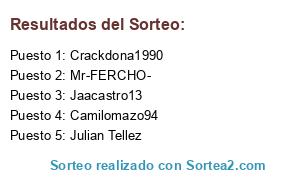 Lista de participantes: Mr-FERCHO-, Julian Tellez, Jaacastro13, Crackdona1990, Camilomazo94.