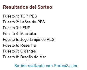 Lista de participantes: Dragão do Mar, Leões do PES, Machuka, Jogo Limpo do PES, LENP, Gigantes, TOP PES, Resenha.