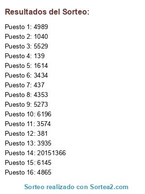 Resultados del sorteo: