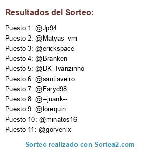 Lista de participantes: @erickspace, @Matyas_vm, @gorvenix, @Jp94, @DK_Ivanzinho, @lorequin, @--juank--, @Branken, @minatos16, @Faryd98, @santiaveiro.