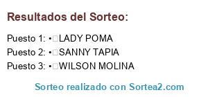 Lista de participantes: • WILSON MOLINA, • LADY POMA, • SANNY TAPIA.