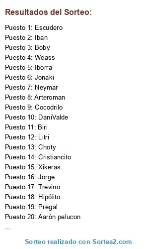 Resultados del sorteo: