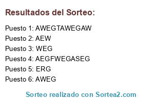 Lista de participantes: AEGFWEGASEG, AWEGTAWEGAW, ERG, AWEG, WEG, AEW.