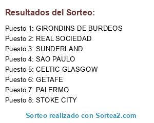 Lista de participantes: GIRONDINS DE BURDEOS, REAL SOCIEDAD, PALERMO, SAO PAULO, SUNDERLAND, STOKE CITY, GETAFE, CELTIC GLASGOW.