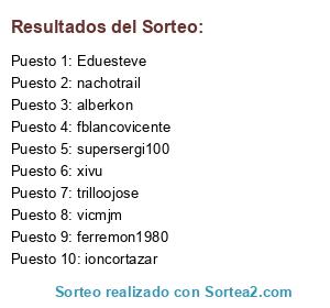 Lista de participantes: Salomon_Spain, Carlos_Verona, fitfithurra, carles, DANDYVITORIA, danbalo2, JuanLuisK9, gabygcalderon, ovetus09, serfolo, roberxinzo, AbtCycle, VeronaFanClub, HildaFC, yo_Cmisma, juluvi, YosoyKini, jclapes11, Clau_loan9, CharlioPerez, avicaceres, increpone, Kovac67P, JMartinPerez13, mamem07, davidnovillomo, rulnb, Josebetis9, NaiaRodriguez01, DavidSererols, sergycuriel, nachotrail, decimas83, Raulysantos, JaviFrnandez, xivu, JavierVila83, ghlorenzo, BernaBiker, rocisant, kostu4, malospelos0, manupalante, jdonkino, alberkon, cesarsri, pedalinos, vicentico76, mary_davy, AAlonsoTeso, figales_Ru, v_artal, maitecaju, ArdanazJavi, HECTORRFAEL, rsanchezadn, dglezfer, JorgeHM9, joelpolalena, ferremon1980, Alvarocs75, tajallo30, elSerra123, lure15, danibravo80, fdemiguellux, supersergi100, cocranty27, janinacostaclad, rmartinpolo, Antonia__Cer, farmacasanueva, Guillem_Caldes, VGMontenegro, CarlosCardiel65, cicloencicloped, PacoCutillas278, Kuko_ksillas1, Guello1982, fblancovicente, joseamaro8, TorresRamire, lozano_de_urroz, JRT72, EjsmEmi, Fredygrao, xelcarrildel10, Andre_M_R, JessicaVallMo, monicatejeda, Grego_blanco, ismolo_79, polakogil, house_carlos, luisponce17, PedroTomeHdez, RobertoBravo7, pedroycristi, jbobans_m, juanpozo70, juair10, RalLolipana11, davidcafor, ivyplasencia, AlfonsoRocky, 7pelu7, _Adry_77, Joel1128, isma_mvp, rantichb, Vasqujos, chupitrupi, brubakerny, elkyn4, luisstito, PalmiraElizondo, antoniomadrian, runtrail4ever, spinmara1313, 22Persson, IvanBustosLara, talibanflamenco, rbaldovi, AChozas, MikelRL, nclu13, gorka_gil, f_casal_, jose_Tour, bulleros66, jofrillo, Charrete1, jipina, ioncortazar, EricTort, melinpop, aclvirtual, MariooTri, albertobdn90, straussmaceta, TarotGloria, JBerlis, Dani_Peraza, iGarcia95, alucascyclist, davidfd1977, BeltranRoger, CANARIOJL, trilloojose, AlbertoMiko, Guillermool, farinek81, OpinionCiclismo, lucho1164r, francisjaime23, Silviambg, smartclubtr, sergiiglesias, vicmjm, lugarto, jordilopezpages, fernando_orosa, AdriaLopez12, Angel_Rodrigue, j_garcia46, vferbarr, andresavall, Eduesteve, loteriaElpulpo, TrailMolins95, DevyVK20, guadamuro78, pirrin24, jknb14, alber_gp, NightmareS0ul, RMSMajestic, edortas, anlomu, jmfzdt, teapetecebarbcn, rolo_tomaso, csrojz, alejandro_9993, escuincle67, joelpusa.
