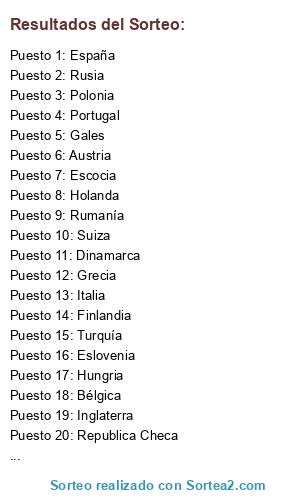 Lista de participantes: Francia, Inglaterra, Alemania, Italia, España, Bélgica, Portugal, Polonia, Gales, Suecia, Rusia, Hungria, Turquía, Eslovenia, Suiza, Holanda, Austria, Republica de Irlanda, Dinamarca, Rumanía, Grecia, Noruega, Escocia, Bulgaria, Republica Checa, Finlandia, Irlanda del Norte.