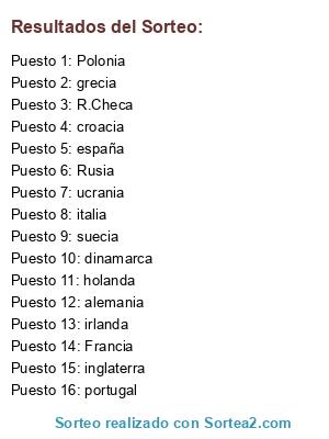 Lista de participantes: Polonia, grecia, Rusia, R.Checa, españa, italia, irlanda, croacia, holanda, dinamarca, alemania, portugal, Francia, suecia, inglaterra, ucrania.