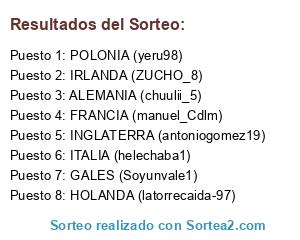 Lista de participantes: IRLANDA (ZUCHO_8), ITALIA (helechaba1), GALES (Soyunvale1), ALEMANIA (chuulii_5), POLONIA (yeru98), HOLANDA (latorrecaida-97), INGLATERRA (antoniogomez19), FRANCIA (manuel_Cdlm).