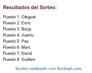 Lista de participantes: Juanlu, Guillem, David, Enric, Pau, Oleguer, Borja, Marc.