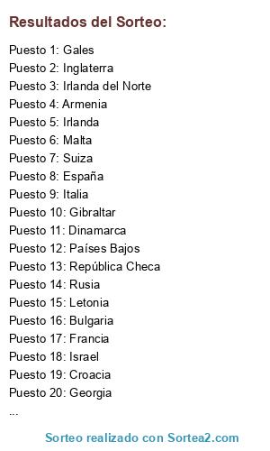 Resultados del sorteo: