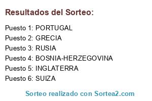 Lista de participantes: PORTUGAL, GRECIA, SUIZA, RUSIA, INGLATERRA, BOSNIA-HERZEGOVINA.