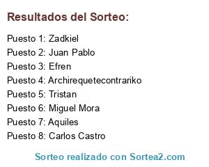 Resultados del sorteo: