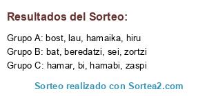 Lista de participantes: bat, bi, hiru, lau, bost, sei, zaspi, zortzi, beredatzi, hamar, hamaika, hamabi.