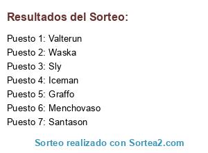 Lista de participantes: Santason, Iceman, Waska, Valterun, Menchovaso, Sly, Graffo.