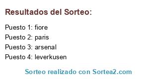 Lista de participantes: arsenal, fiore, paris, leverkusen.