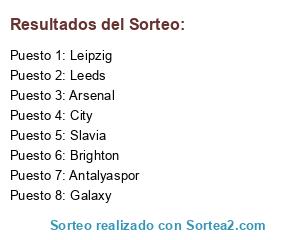Lista de participantes: Arsenal, Antalyaspor, Leeds, Leipzig, Brighton, City, Slavia, Galaxy.