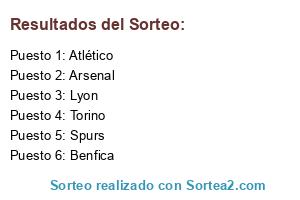 Lista de participantes: Arsenal, Lyon, Torino, Atlético, Benfica, Spurs.