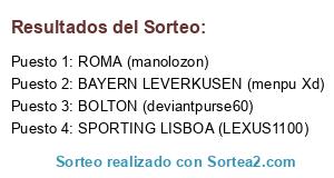 Lista de participantes: BOLTON (deviantpurse60), ROMA (manolozon), SPORTING LISBOA (LEXUS1100), BAYERN LEVERKUSEN (menpu Xd).