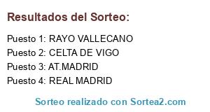 Lista de participantes: RAYO VALLECANO, AT.MADRID, REAL MADRID, CELTA DE VIGO.