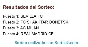 Lista de participantes: REAL MADRID CF, FC SHAKHTAR DONETSK, AC MILAN, SEVILLA FC.