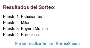 Lista de participantes: Barcelona, Bayern Munich, Estudiantes, Milan.