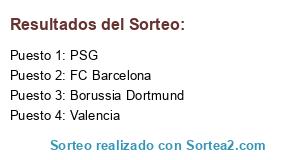 Lista de participantes: FC Barcelona, Borussia Dortmund, PSG, Valencia.