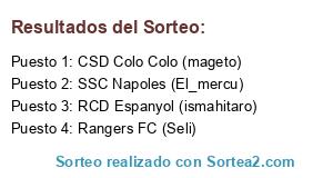 Lista de participantes: CSD Colo Colo (mageto), RCD Espanyol (ismahitaro), SSC Napoles (El_mercu), Rangers FC (Seli).