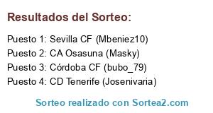 Lista de participantes: Córdoba CF (bubo_79), CA Osasuna (Masky), Sevilla CF (Mbeniez10), CD Tenerife (Josenivaria).