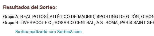 Lista de participantes: GIRONA F.C., ROSARIO CENTRAL, REAL POTOSÍ, PARIS SAINT GERMAIN, SPORTING DE GIJÓN, ATLÉTICO DE MADRID, A.S. ROMA, LIVERPOOL F.C..